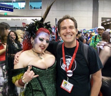Tony Swatton of Sword and the Stone Armory, with Karen Cope of Cope Studios