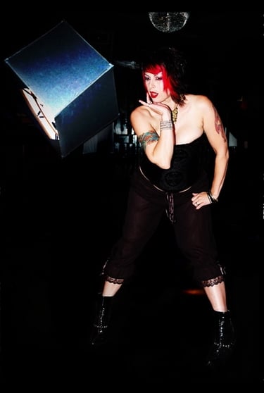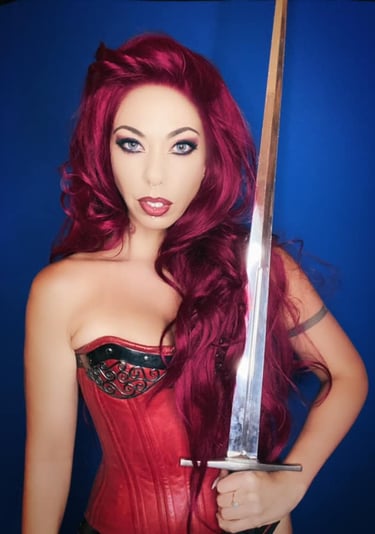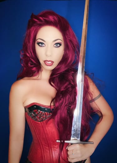 Satine Phoenix modelling a red leather Foxglove® corset