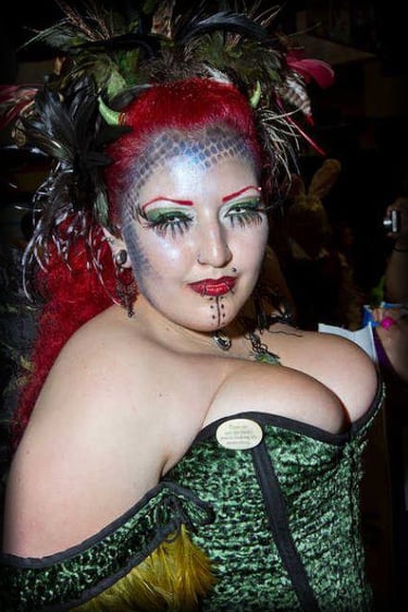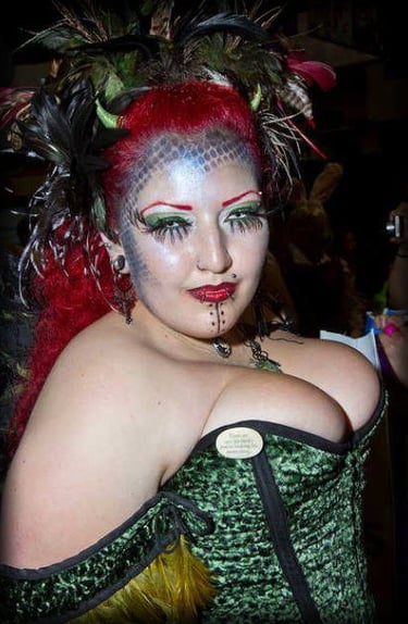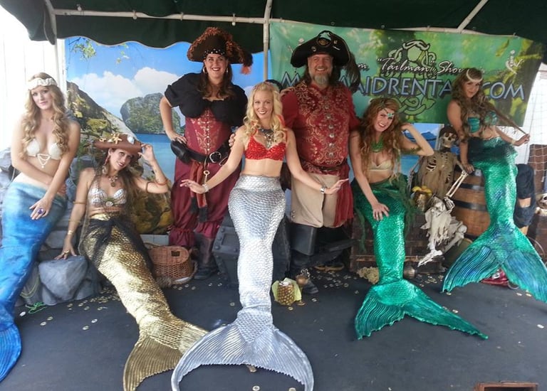 Attire created by Foxglove® (Suzanne Clements) for Karen Cope, hat created by Valefor De Ambershay. Mermaid tails created by Thom Shouse, best known for his work featured in the movie "Splash", featuring Tom Hanks, Daryl Hanna
